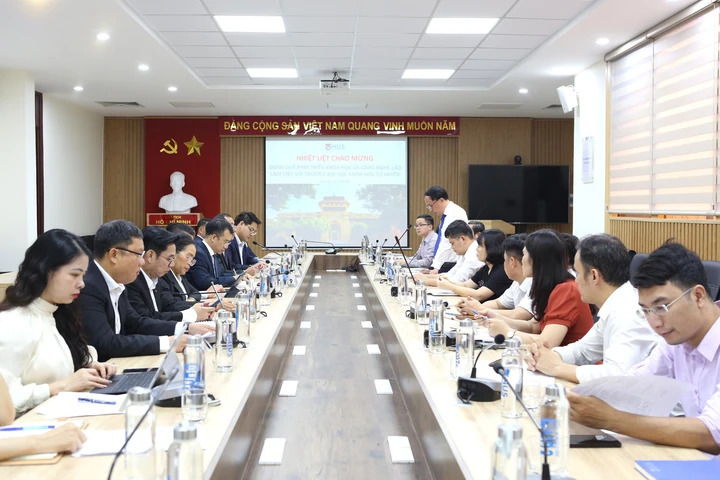 Ngày 04/7/2025, tại Hà Nội, trong khuôn khổ chuyến công tác tại Việt Nam, đoàn Quỹ Phát triển Khoa học và Công nghệ (KH&CN) Lào (FOSTED) do ông Samlane Phankhavong, Thứ trưởng Bộ Giáo dục và Thể thao Lào, Phó Chủ tịch FOSTED dẫn đầu đã có buổi làm việc quan trọng với Quỹ Phát triển KH&CN Quốc gia Việt Nam (NAFOSTED) và Trường Đại học Khoa học Tự nhiên (ĐHKHTN) – Đại học Quốc gia Hà Nội.