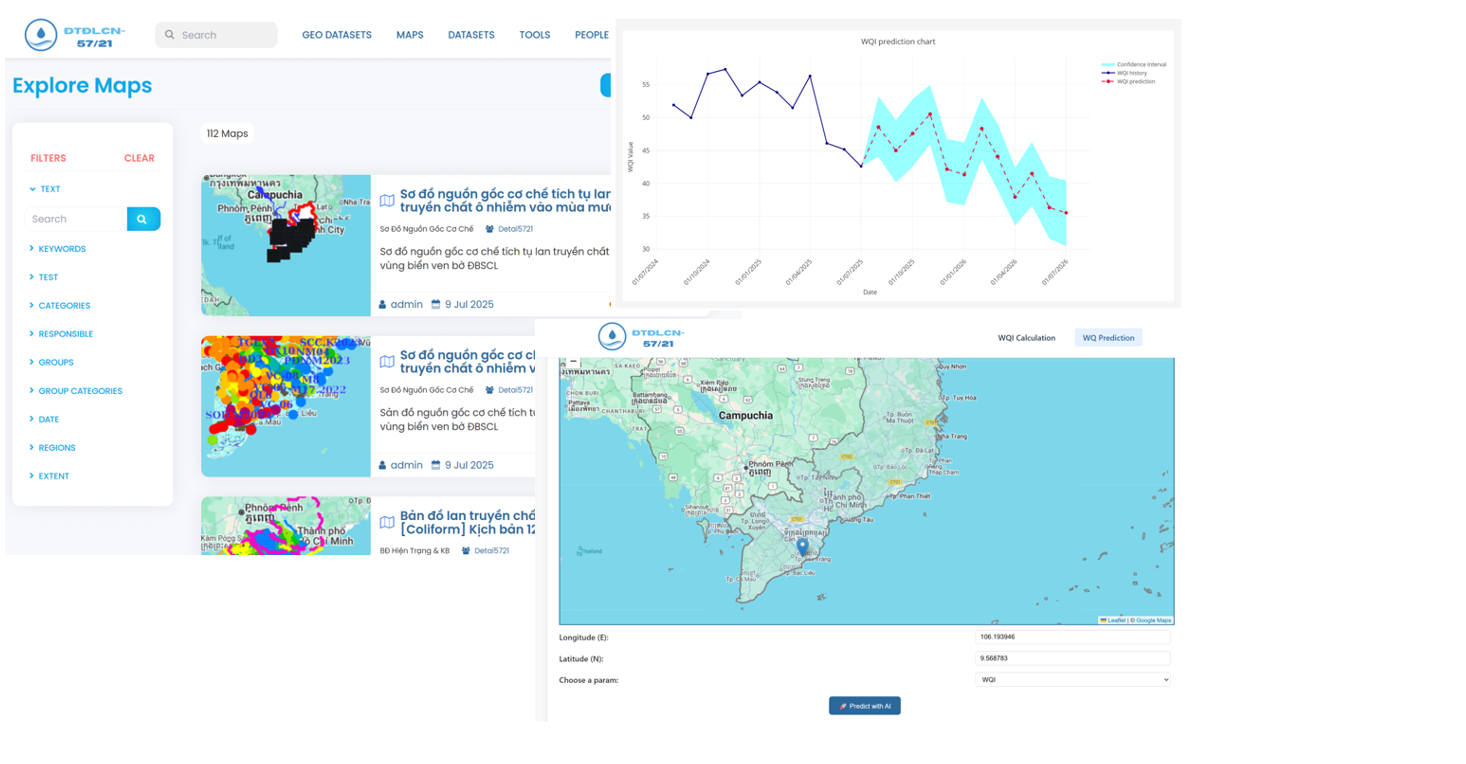Hình 3: Bộ CSDL Đồng bằng sông Cửu Long và hệ thống dự báo, cảnh báo chất lượng nước môi trường.
