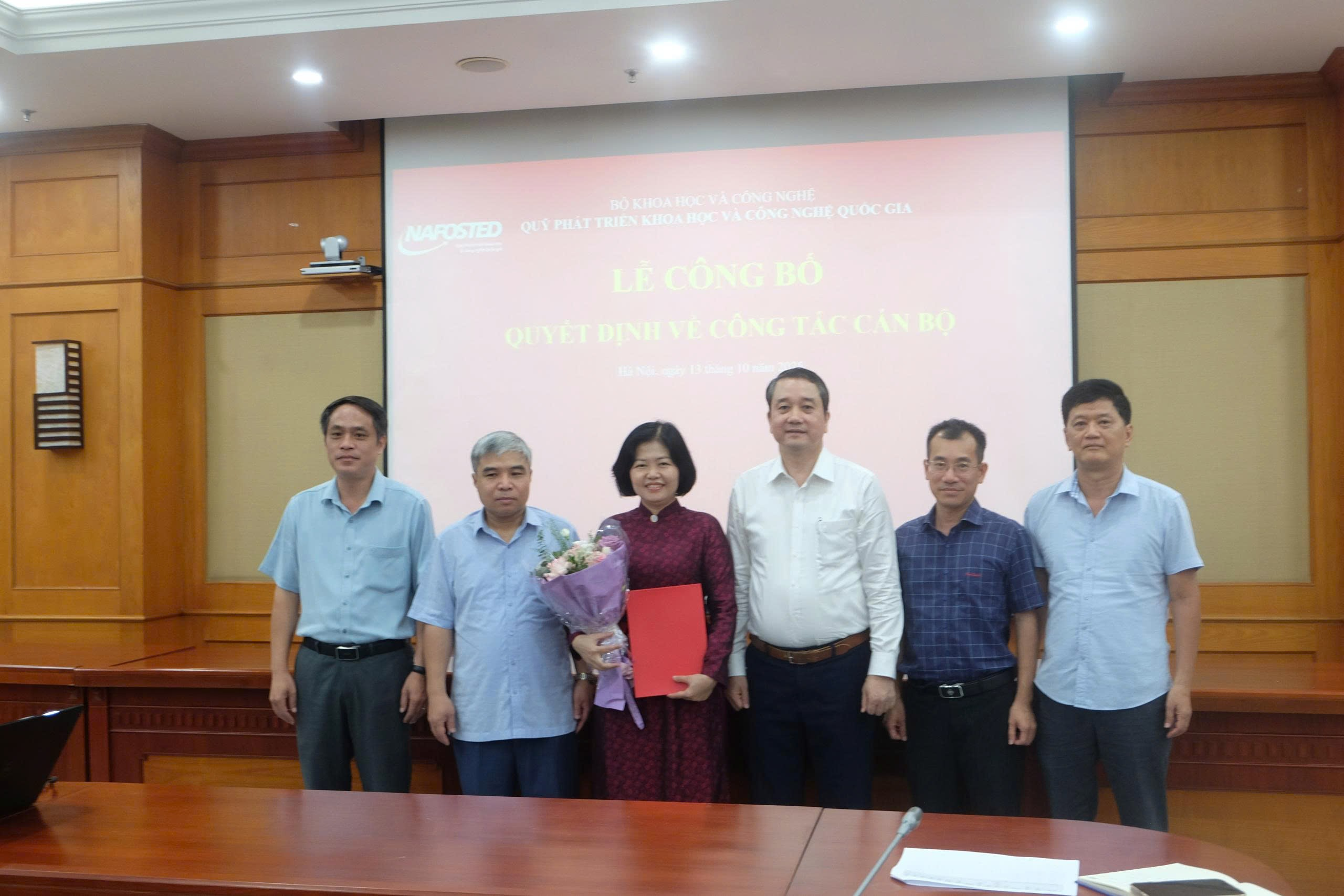 Lãnh đạo Quỹ Phát triển Khoa học và Công nghệ Quốc gia (NAFOSTED) đã trao Quyết định bổ nhiệm và tặng hoa chúc mừng đồng chí Nguyễn Thị Thu Hằng, tân Phó Trưởng phòng Quản lý nghiên cứu ứng dụng.