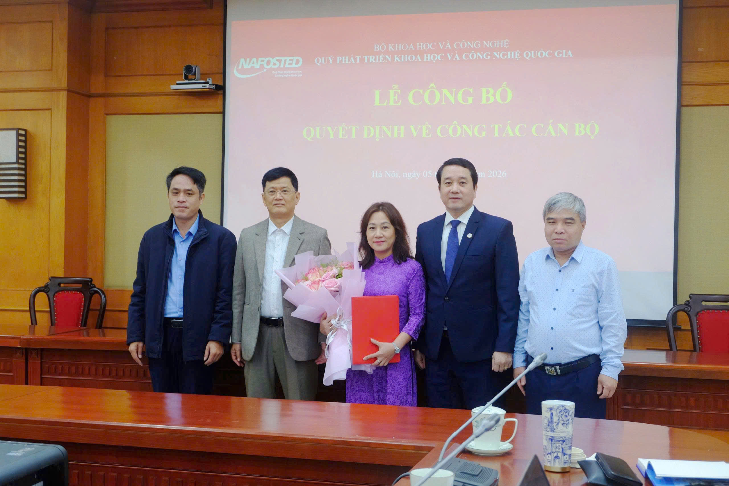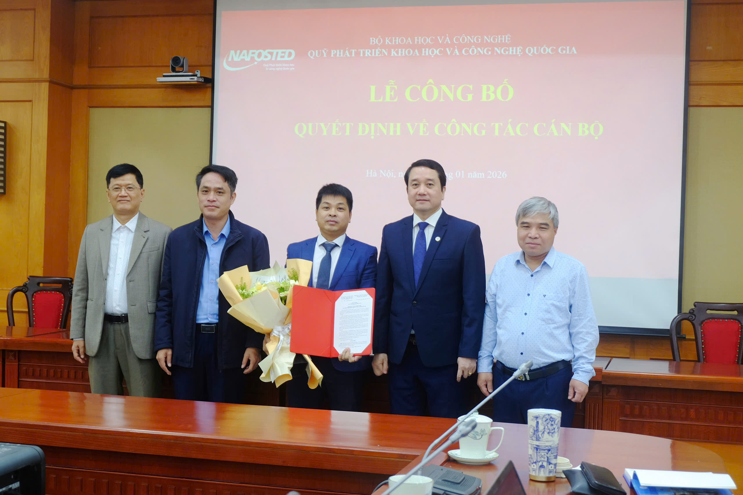 Ngày 05/01/2026, Quỹ Phát triển khoa học và công nghệ Quốc gia đã tổ chức công bố và trao quyết định về công tác cán bộ đối với các chức danh lãnh đạo cấp phòng.