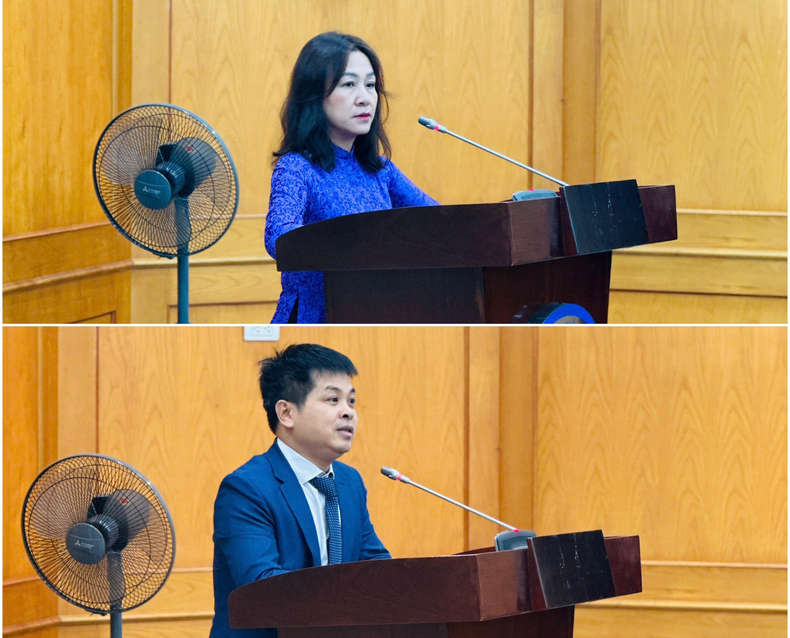 Bà Trương Thu Hằng và ông Hoàng Đức Mạnh phát biểu cam kết nhận nhiệm vụ
