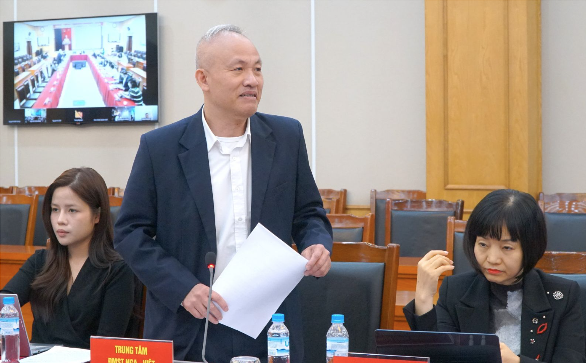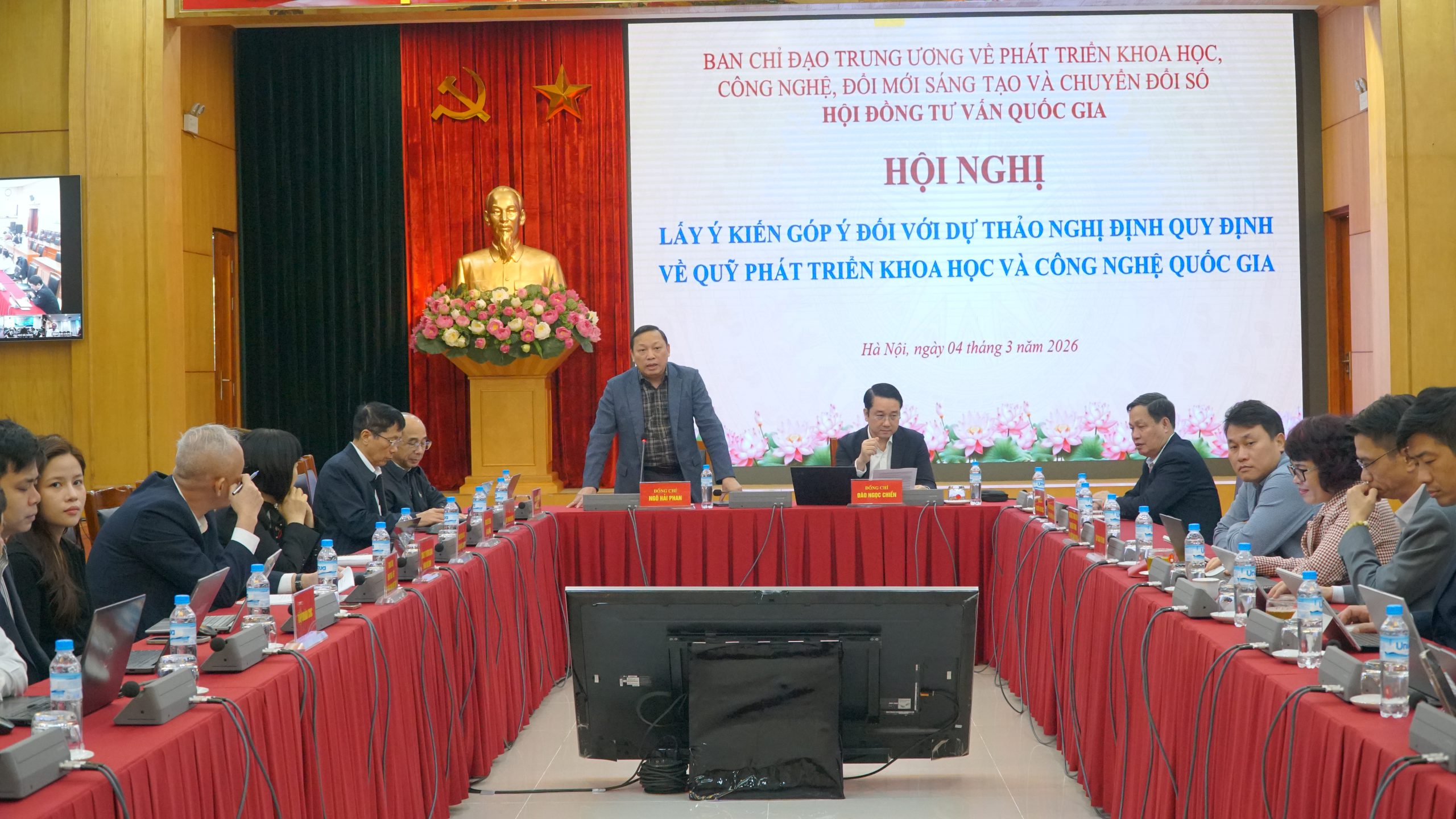 Đồng chí Đào Ngọc Chiến, Giám đốc Quỹ NAFOSTED trình bày dự thảo Nghị định quy định về tổ chức và hoạt động của Quỹ Phát triển khoa học và công nghệ quốc gia.