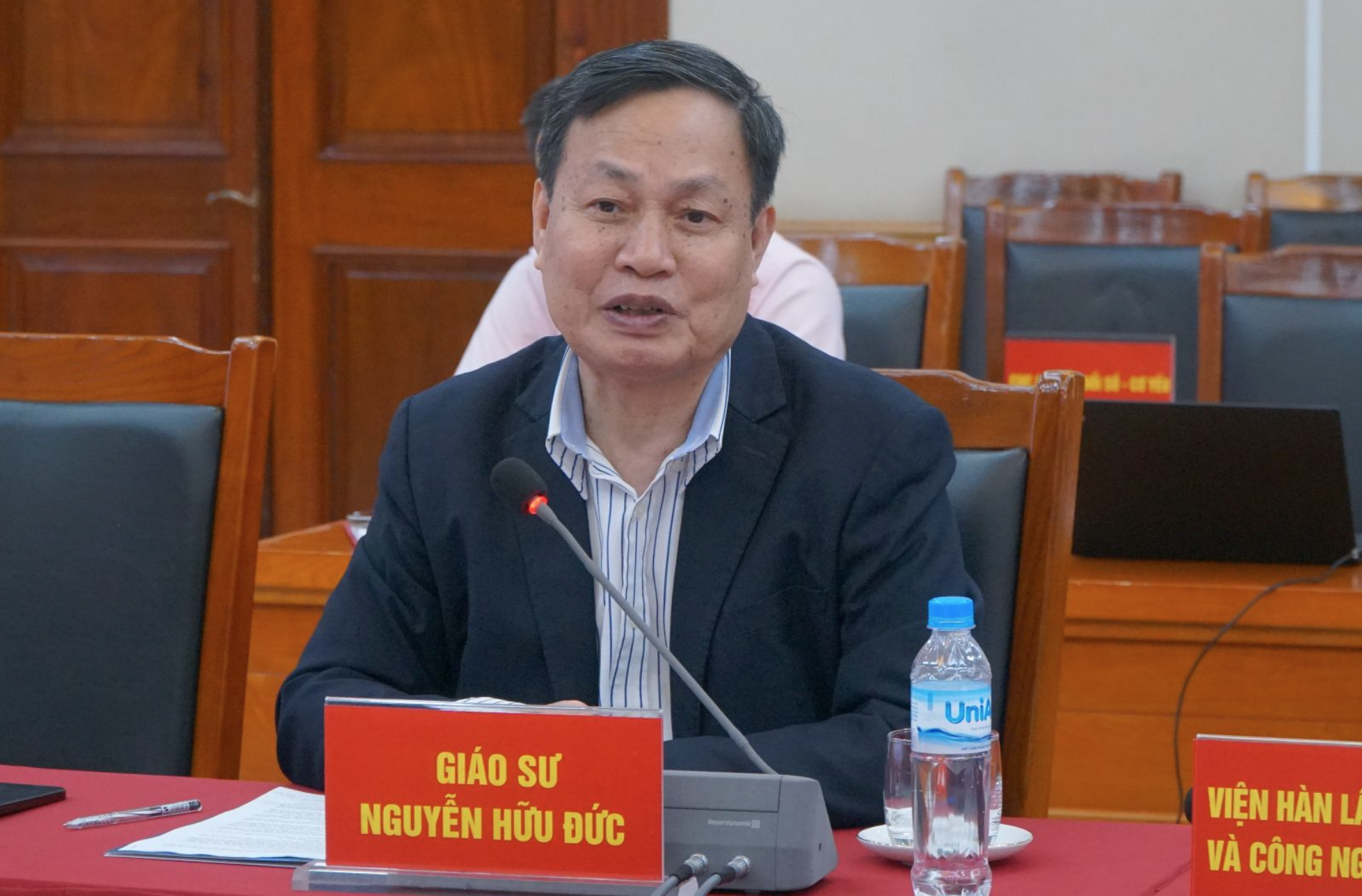 GS. Nguyễn Hữu Đức, Nhà giáo Nhân dân, nguyên Phó Giám đốc Đại học Quốc gia Hà Nội góp ý tại Hội nghị.