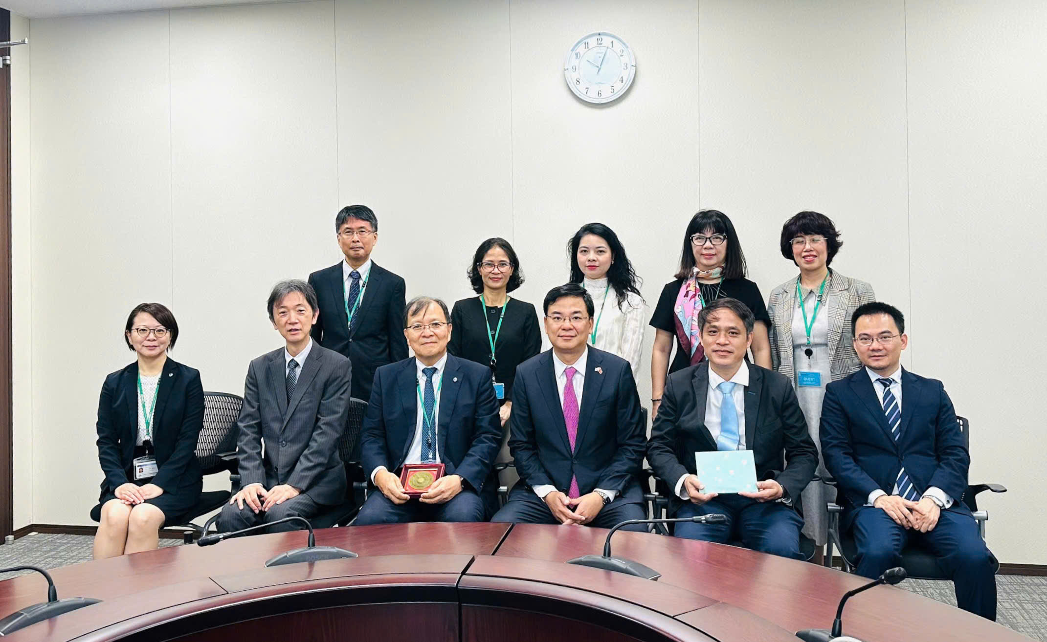 Đoàn công tác Quỹ NAFOSTED và Đại học Osaka chụp ảnh lưu niệm sau buổi làm việc.
