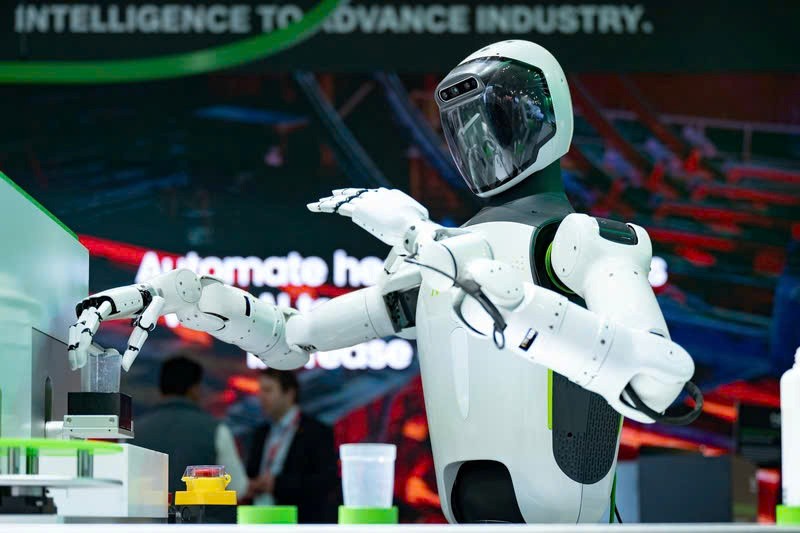 Robot hình người Apollo của hãng Apptronik trình diễn tại hội chợ Hannover Messe 2026