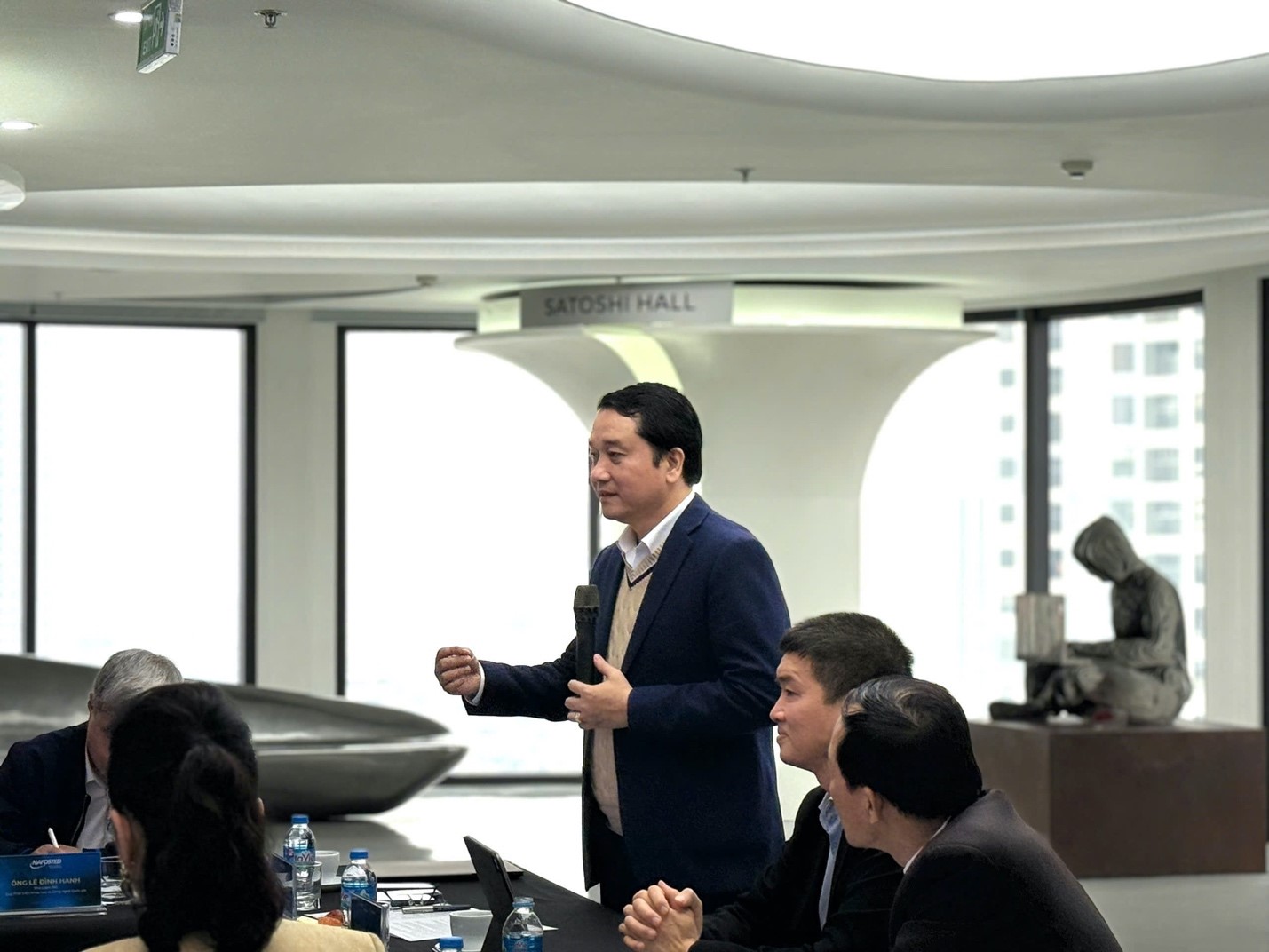 Trước buổi làm việc, đoàn công tác của Quỹ NAFOSTED đã tham quan Blockchain Gallery và Tượng Satoshi, qua đó tìm hiểu về lịch sử hình thành, phát triển và những giá trị nền tảng của công nghệ Blockchain, cũng như vai trò của công nghệ này trong xu thế phát triển công nghệ số toàn cầu.