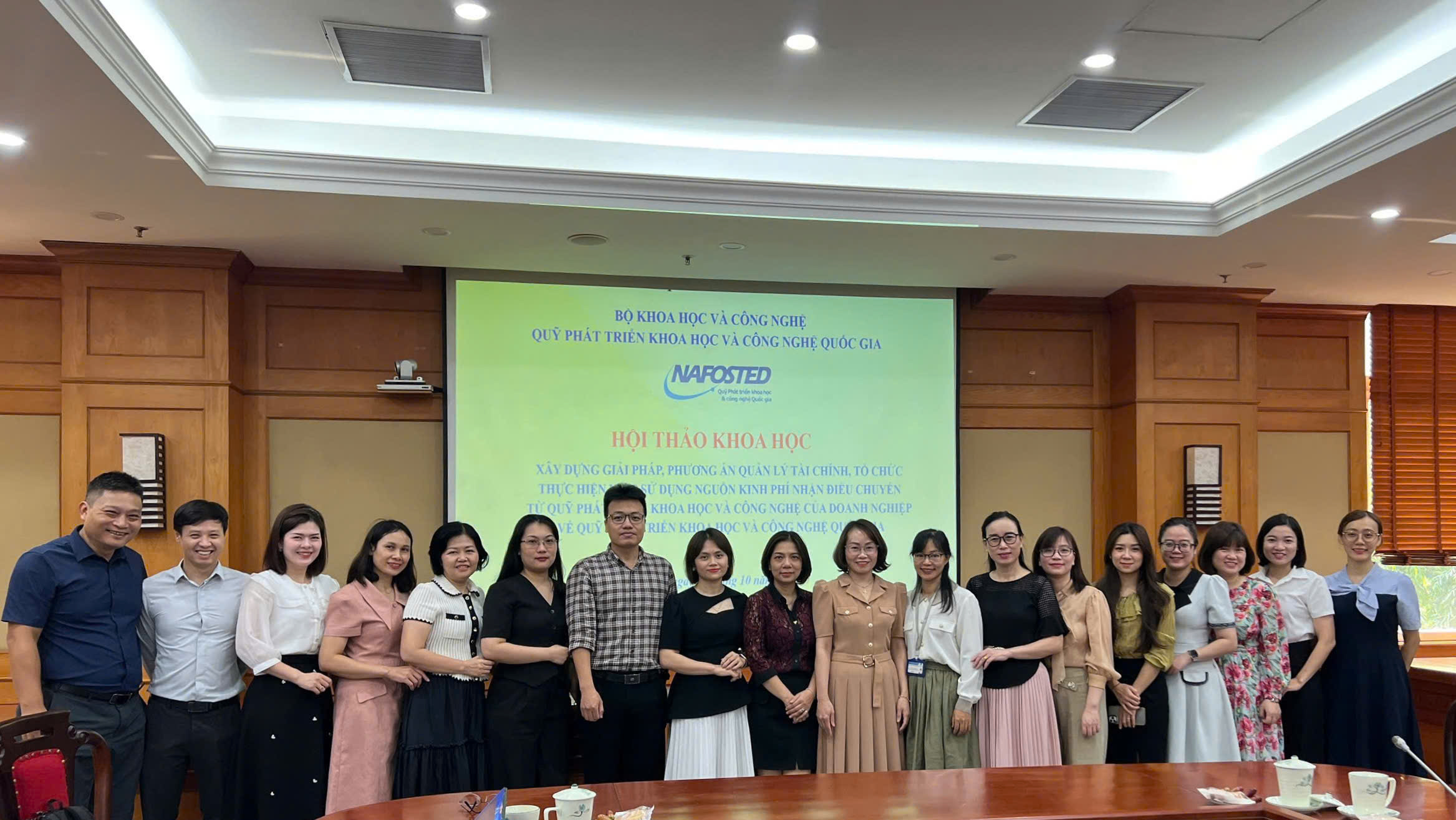 Ngày 10 tháng 10 năm 2025, tại trụ sở Bộ Khoa học và Công nghệ, tòa nhà Cục Đổi mới sáng tạo, trong khuôn khổ đề tài cấp Bộ KH&CN năm 2025, nhóm thực hiện đã tổ chức Hội thảo khoa học với tiêu đề “Xây dựng giải pháp, phương án quản lý tài chính, tổ chức thực hiện việc sử dụng nguồn kinh phí nhận điều chuyển từ Quỹ Phát triển khoa học và công nghệ của doanh nghiệp về Quỹ Phát triển khoa học và công nghệ Quốc gia”.