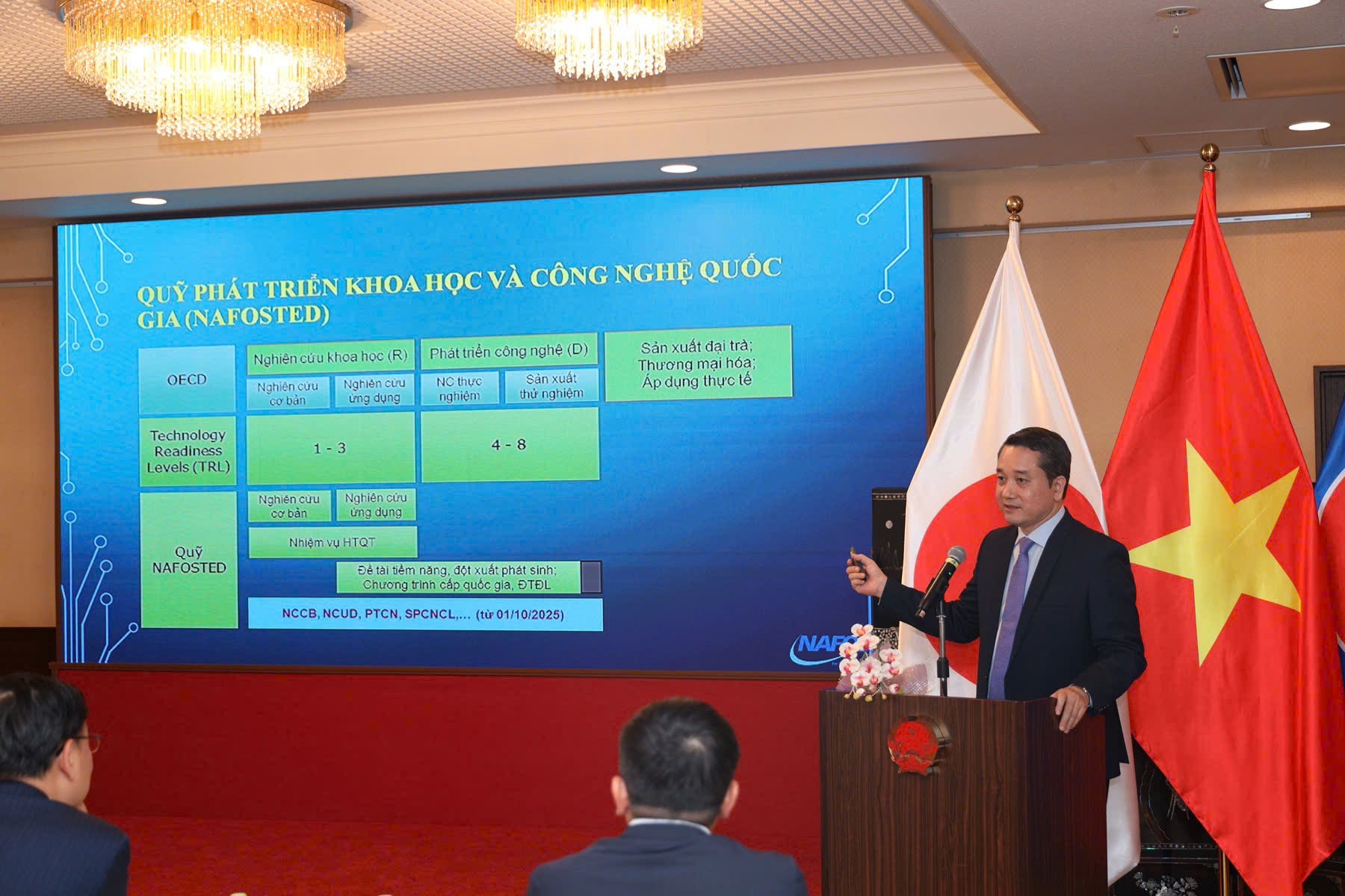 Ngày 2/10/2025, tại Đại sứ quán Việt Nam tại Nhật Bản, đã diễn ra Tọa đàm “Hợp tác Nhà nước – Nhà khoa học – Doanh nghiệp, thúc đẩy nghiên cứu phát triển công nghệ chiến lược – Chip Edge AI”. Sự kiện do Đại sứ quán Việt Nam tại Nhật Bản phối hợp cùng FPT Japan tổ chức, với sự tham dự của Bộ trưởng Bộ Khoa học và Công nghệ Nguyễn Mạnh Hùng, Giám đốc Cơ quan điều hành Quỹ Phát triển khoa học và công nghệ Quốc gia – ông Đào Ngọc Chiến, các chuyên gia, trí thức, doanh nghiệp trong và ngoài nước.